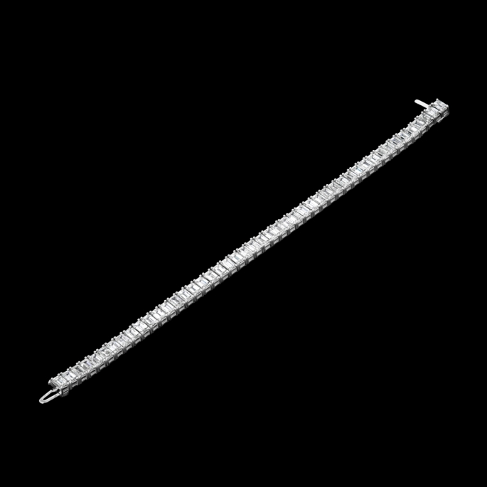 18.80 carat emerald cut diamond tennis platinum bracelet, E-F color, VVS.