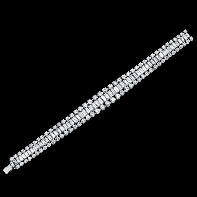23.06 carats of diamonds(E-F color, VVS-VS) set in a platinum bracelet.