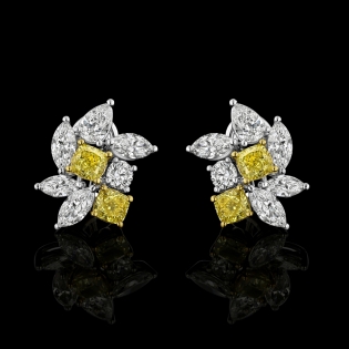 5.57 carats of Fancy Intense Yellow(SI1-SI2) & D-E VS diamonds set in platinum/18kt yellow gold.
