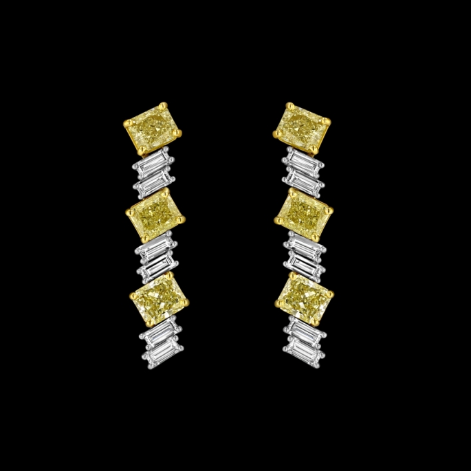 8.03 carats of Fancy Light Yellow radiant, VVS-VS(GIA) and E-F, VVS-VS Baguette diamonds set in platinum/18KT gold.