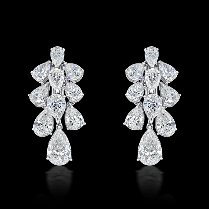 Over 21 carats of G-H color pear shape diamond earrings(VS-SI1) set in 18kt white gold.