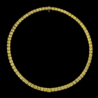 53 carats of fancy yellow radiant cut diamonds set in 18 KT gold.
