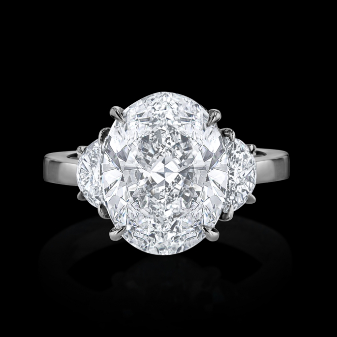 5.01 carat H VS2 oval cut diamond(GIA) set in platinum plus 0.64 carat half moons.