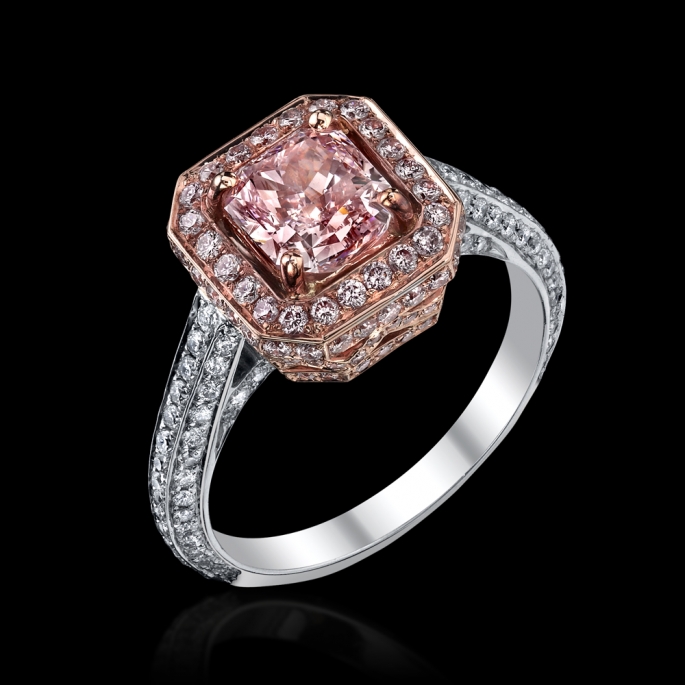 1.26 carat fancy purplish pink radiant cut diamond(GIA) set in platinum.