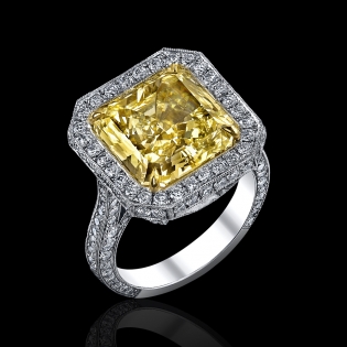 7.43 carat fancy yellow VVS1 radiant cut diamond(GIA) set in platinum.