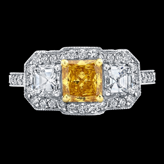 .86 carat fancy vivid yellow-orange radiant cut diamond(GIA) set in platinum.